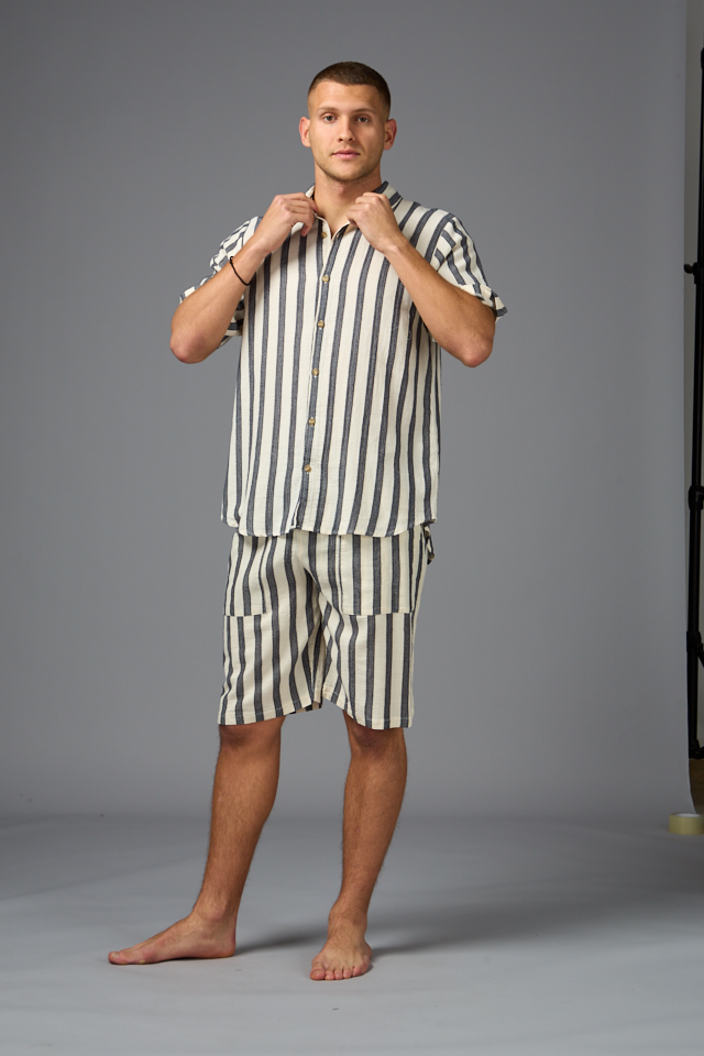 MEN’S SHORT SLEEVE SHIRT WITH BUTTONS, STRIPED BLACK